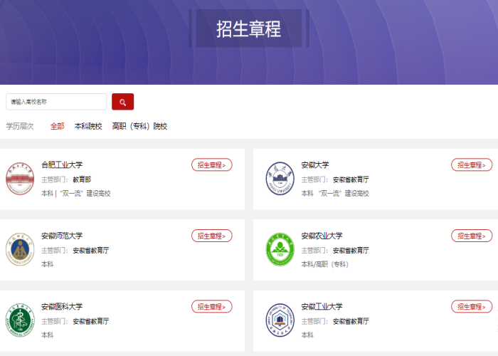 2023年8月10日,根据省教育厅高教处工作部署,安徽继续教育网络园区平台上线安徽省高校2023年高等学历继续教育招生简章专栏。该专栏依托安徽继续教育在线平台建设开发,为省内高校高等学历继续教育招生简章提供综合展示平台。截至目前,该招生专栏总共发布展示全省91所本专科高校招生简章信息。