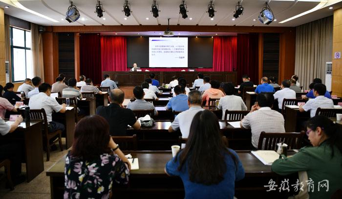 6月28日,省委教育工委召开理论学习中心组学习扩大会议,集体学习习近平总书记在中央政治局第二十次集体学习时发表的重要讲话和在中非团结抗疫特别峰会上的主旨讲话精神,传达学习《习近平关于力戒形式主义官僚主义重要论述选编》以及中央和省委关于统计工作的重要文件,并围绕深入学习领会习近平总书记关于意识形态工作的重要论述,严格落实意识形态工作责任制,邀请省委宣传部副部长、省电影局局长范荣晖作专题辅导报告,并开展专题研讨。省委教育工委书记钱桂仑主持会议,在肥委厅领导,机关各党总支(党支部)和处室(单位)主要负责同志参加会议。