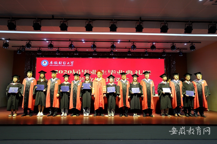 7月2日下午,安徽财经大学2020届毕业生毕业典礼暨学位授予仪式在学校求真楼报告厅举行,此次毕业典礼同时通过在线直播平台面向全球直播。校党委书记、校长丁忠明,校党委副书记杨烨,校党委常委、副校长周加来、冯德连、张跃军、程刚,校党委常委、纪委书记、监察专员宣扬,副校长张焕明出席并在主席台就坐。校学位评定委员会委员,学校相关职能部门、各培养单位主要负责人,2020届毕业生代表、教师代表与全体毕业生一同相聚云端,共同见证2020届毕业生掀开人生新篇章,开启人生新旅程。