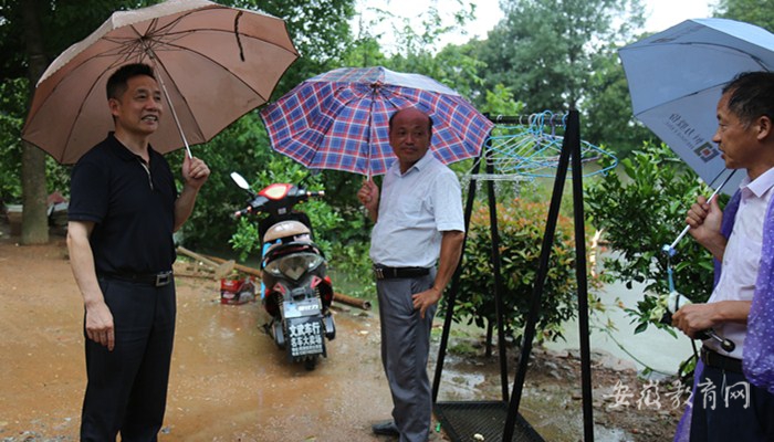 会后,丁家云一行在村干部陪同下,走访慰问帮扶对象,同时还冒雨深入凤凰村防汛一线,慰问现场坚守的干部群众。