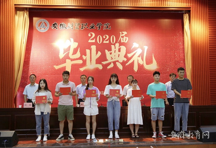 7月11日上午,安徽财贸职业学院举行2020届毕业典礼。党委书记张志祥,党委副书记、院长刘银国,党委委员、纪委书记何翔,党委委员、副院长胡戴新出席毕业典礼。受疫情影响,本届毕业典礼学院采取线上线下相结合的特别方式举行,学院全体中层干部、毕业班辅导员代表、优秀毕业生代表现场参加毕业典礼,未能到场的毕业生和广大师生通过观看“云直播”,在线感受毕业季满满的“仪式感”。
