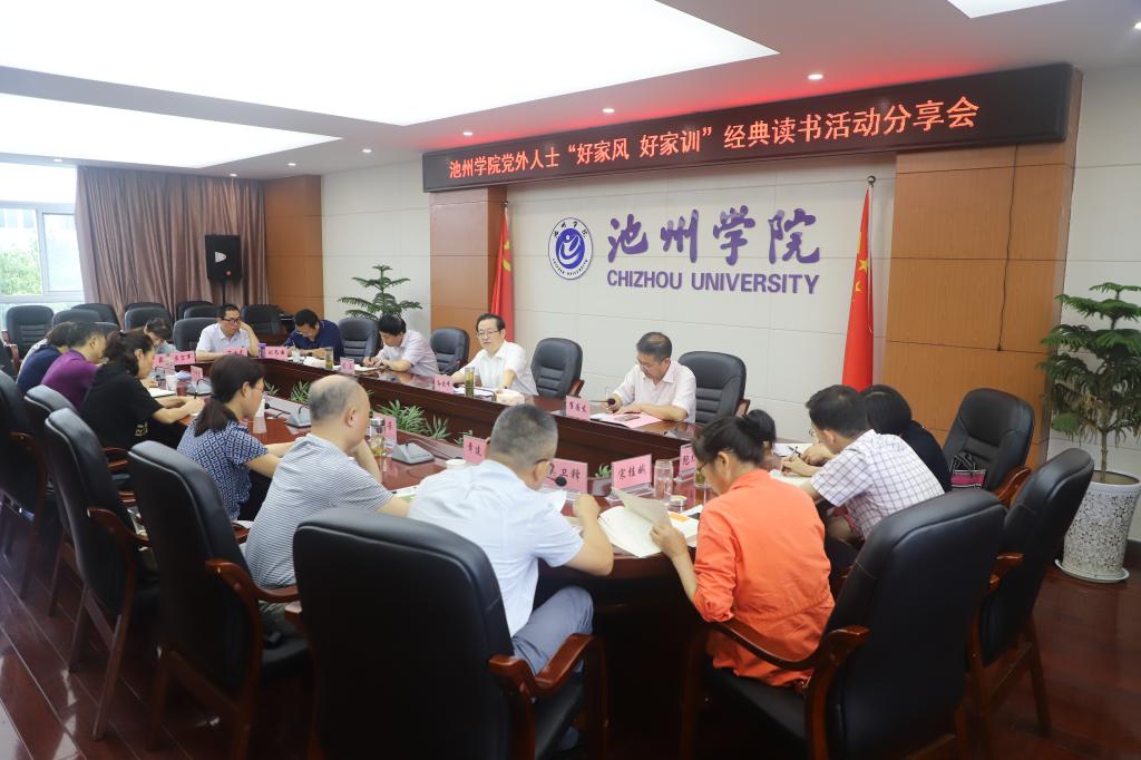 7月16日下午,池州学院在行政北三楼会议室开展党外人士“好家风 好家训”经典读书活动分享活动。学校党委书记孙晓峰出席会议并讲话,党委副书记崔国发主持会议。学校省、市、区人大代表、政协委员,知联会会长、侨联主席、各民主党派负责人,党委统战部、马克思主义学院等部门负责人参加活动。