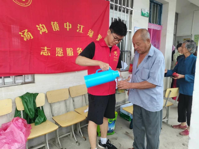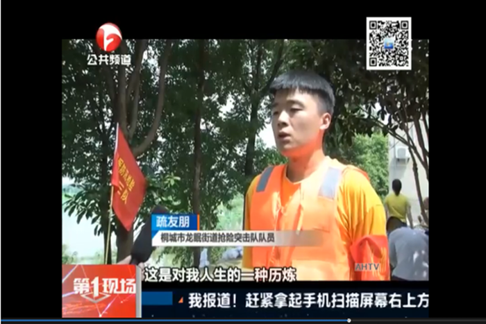 灾情就是命令,防汛就是责任。7月19日清晨,池州学院艺术与教育学院青年教师谭甲文来到池州市清溪街道城防指挥所南湖社区点报到,与其他五名青年志愿者组建了巡查小分队。从指挥所起沿白洋河堤往北两公里的圩堤上,在社区队长的带领下,他们一字排开,时刻注意着水位的变动。在堤岸下,有三户村民的水井,他们两小时观察一次水位变化情况,如有气泡、浑浊等现象,及时向指挥所报告。谭甲文表示,巡堤任务虽然很简单,但巡堤过程却容不得半点马虎,必须集中精神,一步一锹去探视。一趟下来,两个小时过去了,浑身除了湿透,还有酸痛,但看到不远处呼啸而过的高铁,大家都会心的笑了。