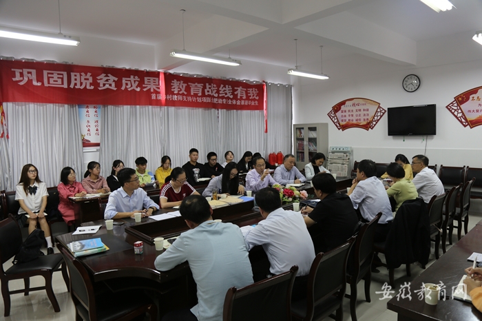 会上,洪家友认真听取大家的发言后表示,此次调研是为了更好的掌握小教专业定向培养方案的开展情况,为下一步的学生培养提供实践依据;希望同学们在这里服从管理、虚心学习,增强使命感、责任感,尽快融入到学校的工作当中去,扎根家乡,热爱教育、热爱金寨,做习近平总书记要求的“四有”好老师。洪家友表示,目前金寨县小学的建设硬件基本完备,给小学生提供了优美的学习环境,也希望学校未来能够与金寨开展更多的实习、就业合作。他强调,定向培养小学乡村教师的现实意义重大,既能提升小学教育水平,又能促进地区稳定就业,合肥幼儿师范高等专科学校将继续与金寨县共同肩负培养使命,共谋当地基础教育发展,助力教育脱贫攻坚。