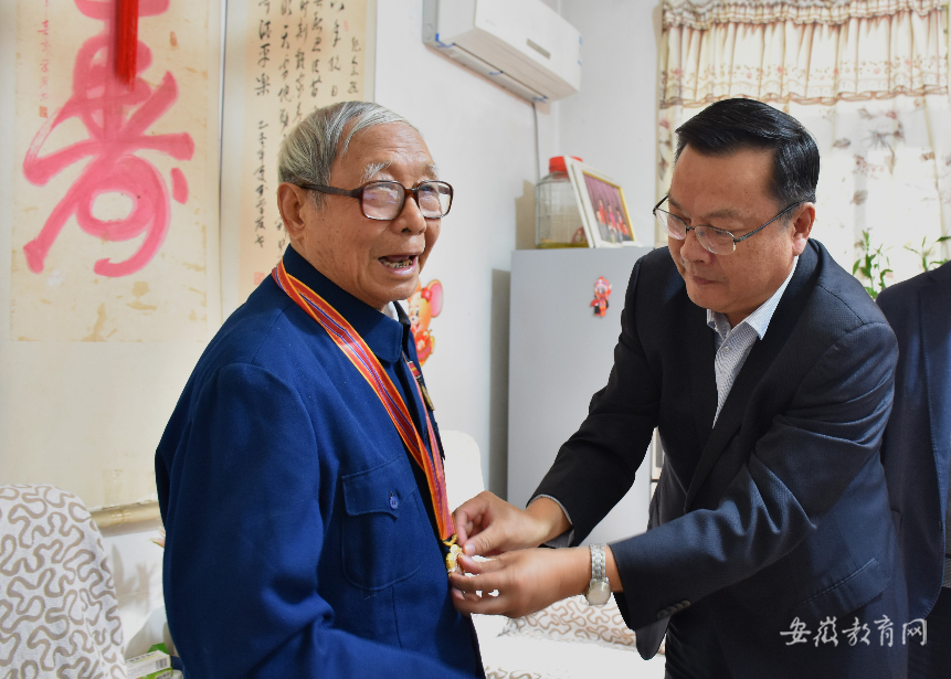 在纪念中国人民志愿军抗美援朝出国作战70周年之际,10月26日下午,合肥师范学院党委书记徐成钢,党委副书记、副院长李进华专程看望慰问在校抗美援朝志愿军老战士和家属,向他们颁发“中国人民志愿军抗美援朝出国作战70周年”纪念章,强调要进一步传承弘扬伟大的抗美援朝精神,传承光荣革命传统,为推动学校健康稳步发展增添强大精神动力。校办公室、组织部、离退休工作处、工会、人事处、后勤处主要负责人参加慰问。