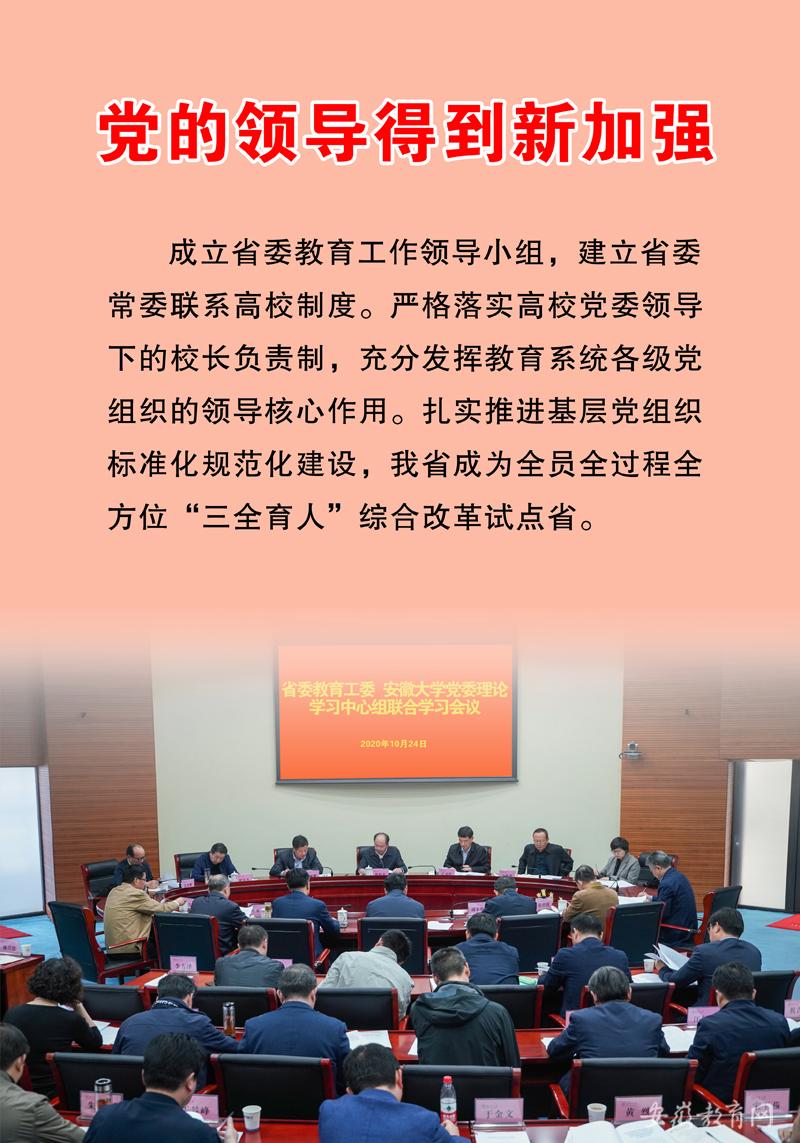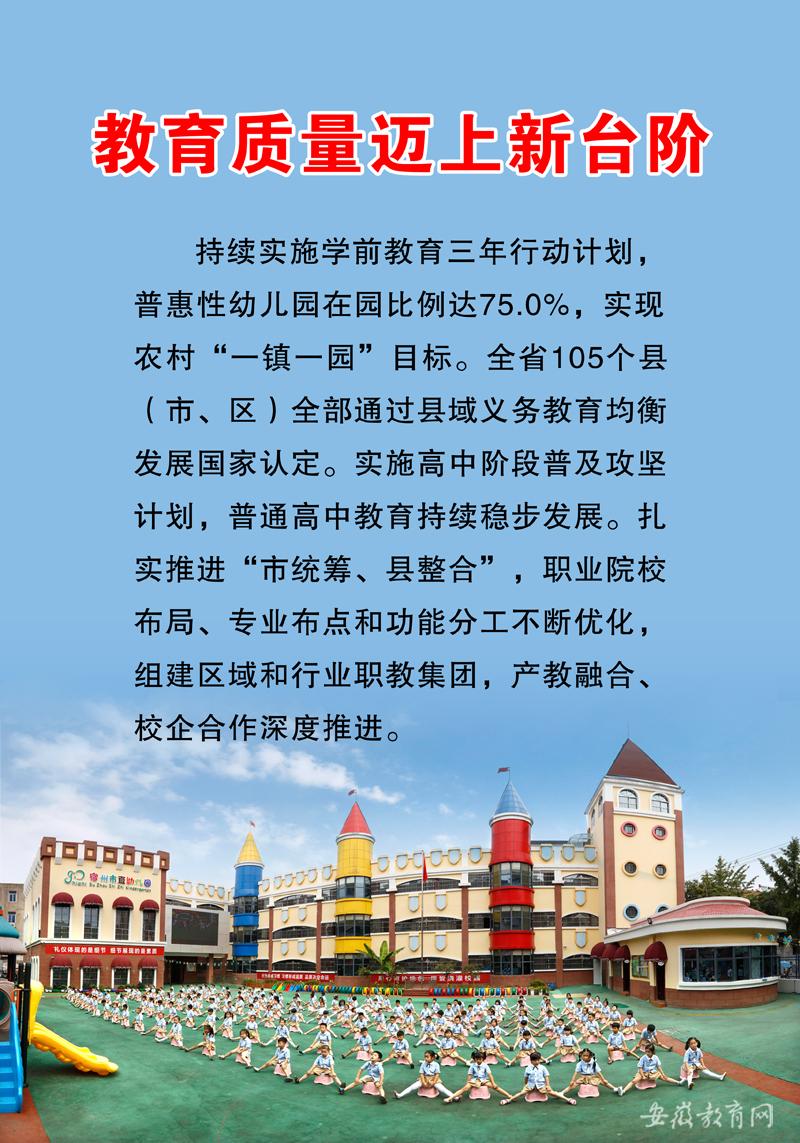 “十三五”以来,安徽教育现代化提档加速、亮点频现。五年来,全省教育系统以习近平新时代中国特色社会主义思想为指导,全面贯彻党的教育方针,深入落实立德树人根本任务,教育规模实现新发展,教育质量迈上新台阶,教育改革取得新突破,服务发展作出新贡献,条件保障得到新强化,党的领导得到新加强。从今天起,省教育厅在安徽教育网以“增强教育自信——‘十三五’安徽教育发展巡礼”为主题,陆续推出系列报道,全面展示我省“十三五”教育改革发展成效,记录全省教育人解放思想、开拓创新、凝心聚力、主动作为的奋斗足迹。