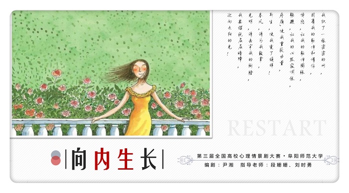 阜阳师范大学获奖剧目《内向生长》,以一位即将毕业的大学生自我探索为主线,讲述了一位学业上璀璨夺目、生活上却孤独无助的女生,如何面对童年家庭创伤、爱情友情频频受挫的种种困扰,最终冲破心灵罗网,破茧重生的故事。表演中采用了独白、旁白、多重替身、雕塑、束绳、空椅子等心理剧技术,还原女主角的心理挣扎过程,既有艺术表演力又具心理治疗性。剧目中渗透了家庭关系、人际沟通、自我探索、生涯规划等各类社会心理元素,对社区、学校和家庭开展心理疗愈具有一定启示作用。