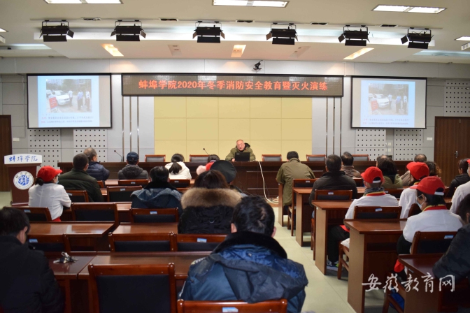 为维护广大师生人身财产安全,筑牢校园安全“防火墙”,12月10日下午,蚌埠学院在视频会议室举办2020年冬季消防安全知识讲座暨灭火演练活动,后勤饮服、宿管人员,辅导员、学生骨干等100余人参加了培训。