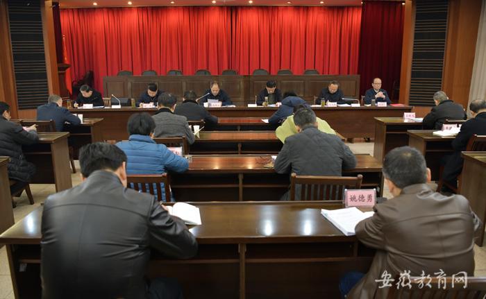 2021年1月25日上午,省委教育工委召开理论学习中心组扩大学习会议,集体学习了习近平总书记在省部级主要领导干部学习贯彻党的十九届五中全会精神专题研讨班开班式、中共中央政治局民主生活会上的重要讲话精神,学习了党章和《中国共产党党员权利保障条例》《中共中央关于加强党的政治建设的意见》《关于巩固深化“不忘初心、牢记使命”主题教育成果的意见》,学习了中共中央办公厅有关文件。省委教育工委副书记、省教育厅厅长赵振华主持会议,在肥委厅领导同志,机关各党总支(党支部)和处室(单位)主要负责同志参加会议。