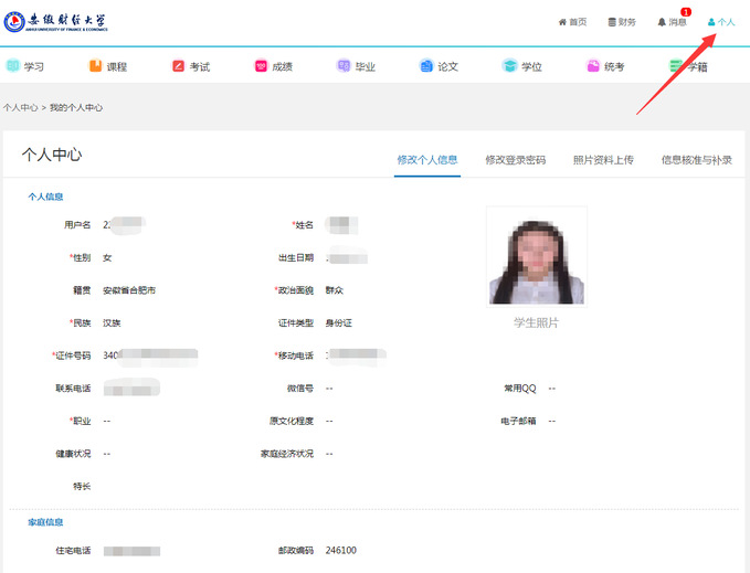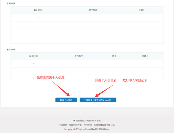 入学登记表打印办法:2022级新生先登录教务系统:acjjy.aufe.edu.cn/,登录用户名为个人学号,密码是身份证后六位。请同学先完善个人信息后,再下载打印个人信息表。打印位置如图: