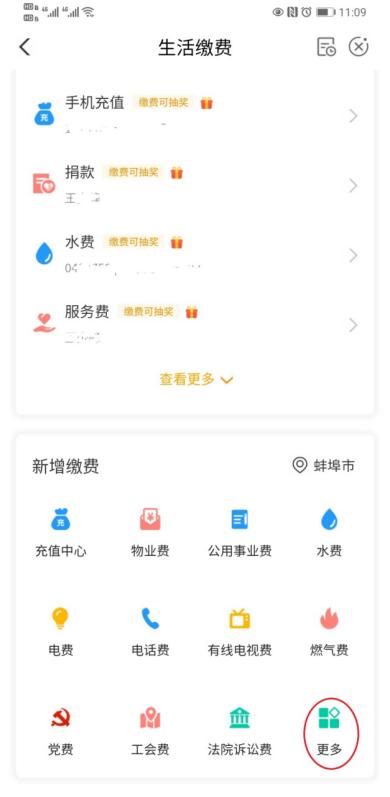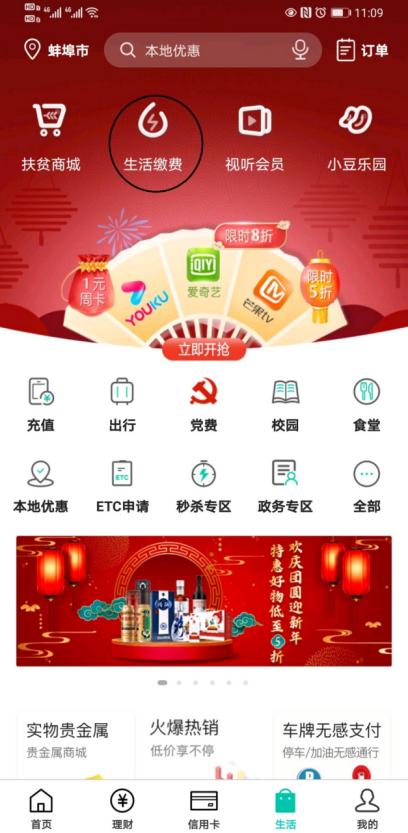步骤2:点击→生活缴费【一定要定位到蚌埠市】
