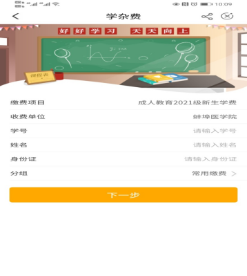 登录中国农业银行APP,点击生活【一定要定位到蚌埠市】→生活缴费→页面最下方“更多”→教育培训→学杂费→蚌埠医学院,输入学号、姓名、身份证号。